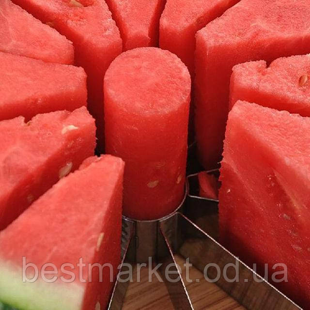 Завдяки своїй універсальності виріб має ще одну назву — кавунорізка. Після розрізання плодів, всі скибочки акуратно лежатимуть у зручному контейнері, звідки їх можна буде досить легко витягувати для подальшого вживання