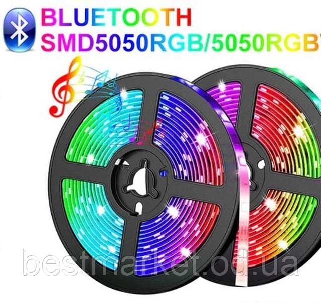 Комплект Світлодіодної Стрічки SMD 5050 RGB Кольоровий з Bluetooth від USB 5 м